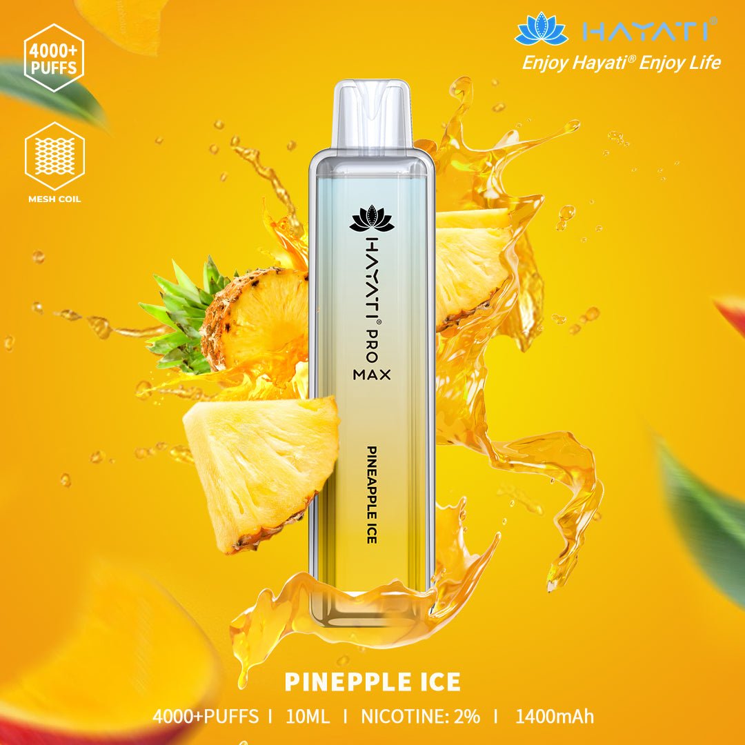 Experience a tropical twist with the Hayati Pro Max Pineapple Ice — where sweet, juicy pineapple meets an icy finish for a smooth, refreshing vape every time. Packed with over 4000 puffs, this disposable vape features a mesh coil for bold flavor delivery and consistent performance. With 10ml of e-liquid, 2% nicotine strength, and a robust 1400mAh battery, it’s built for long-lasting satisfaction.